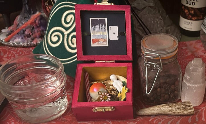 Curiomancy: art of divination through curios; small, meaningful objects that hold energy, memory, and symbolism. Each object tells a story, and together they weave a narrative of your current path, potential, and personal magic. This isn’t fortune-telling; it’s story-spelling, an intuitive, tactile experience that invites you to rediscover meaning hidden in the ordinary and see your own energy reflected through the arrangement of sacred objects.